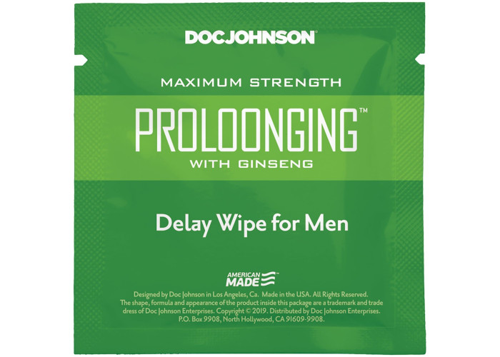 Бажаєте всю ніч присвятити пристрасті? Тоді вам точно потрібно купити пролонгують серветки Doc Johnson Delay Wipes For Men - зручні одноразові серветки, які знижують чутливість за рахунок бензокаїну і дають можливість протриматися так довго, як вам заманеться! До складу входить також екстракт женьшеню - традиційний афродизіак, посилює збудження.