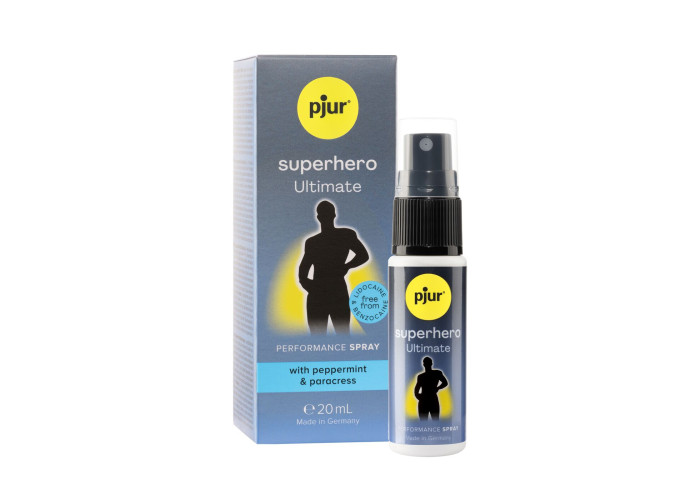 Пролонгувальний спрей pjur Superhero Ultimate Spray — простий та економічний у використанні, не сушить ніжну шкіру та має легкий свіжий аромат м’яти. Це дуже ефективний натуральний засіб для по-справжньому довготривалих секс-експериментів!