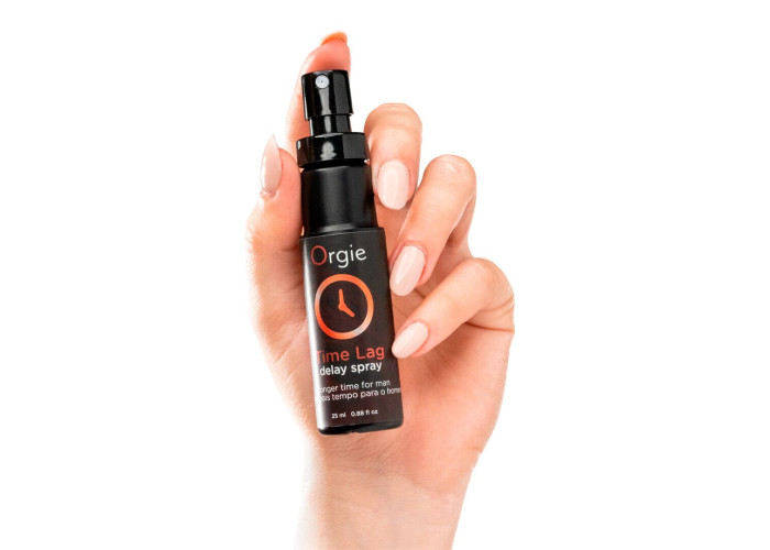 Як використовувати Orgie Time Lag Delay Spray: безпосередньо перед близькістю розпорошіть спрей 2–3 рази на пеніс і помасажуйте вздовж усієї довжини стимулювальними рухами. Зачекайте декілька секунд, доки не відчуєте зниження чутливості. За потреби нанесіть повторно.