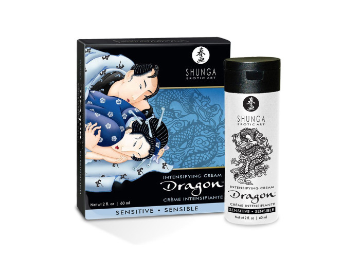 Стимулювальний крем для пар Shunga SHUNGA Dragon Cream SENSITIVE з ефектом «Крига і Полум'я» діє відразу у двох напрямках і чинить як збудливий, так і подовжувальний ефект, наповнюючи при цьому чоловічою силою та енергією. Приголомшливі відчуття тепла та прохолодного поколювання передаються обом партнерам, даруючи незабутнє задоволення під час інтиму.