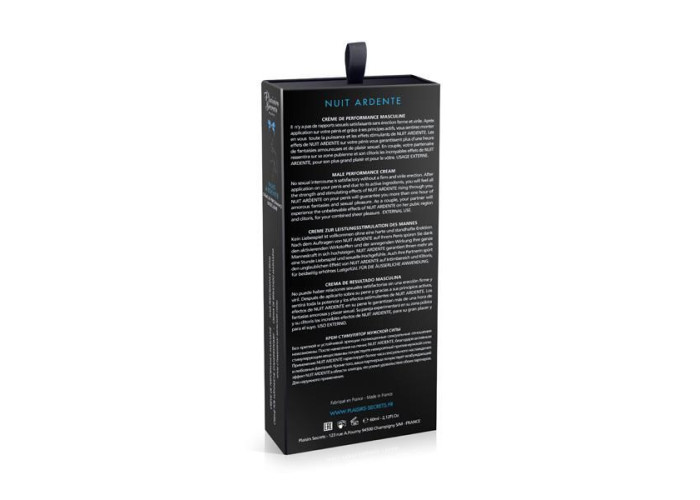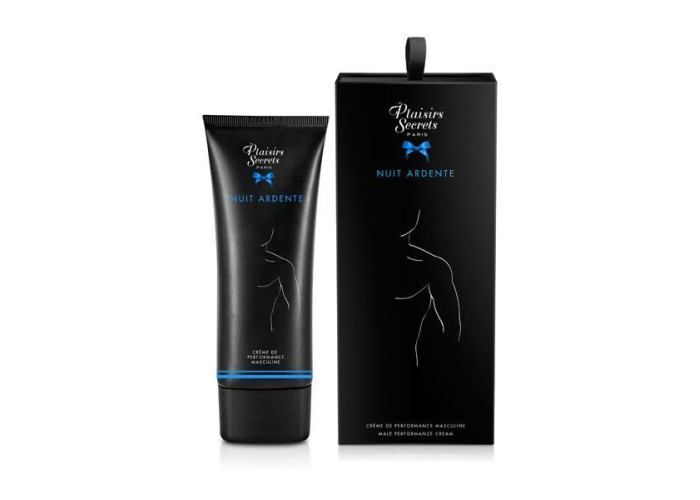 Крем для підтримки ерекції Plaisirs Secrets Male Performance Cream Nuit Ardente (60 мл) – при нанесенні на пеніс ви відчуєте неймовірний приплив чоловічої сили. Застосування крему забезпечує більше години сексуальної насолоди та сексуальних фантазій, крім того, ваша партнерка так само відчує збуджуючий ефект в області клітора, що посилить задоволення обох партнерів.