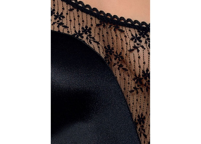 Шикарне боді-монокіні Petra Body black XXL/XXXL — Passion Exclusive вміло акцентує увагу на чуттєвості та красі хвилювальних вигинів. Завдяки хвилеподібному вирізу боді оголює животик і частину спинки, моделює гарну лінію талії, роблячи її вужче. Вставка із прозорої сіточки з квітковими мотивами прикрашає лінію бікіні та груди, залишаючи для вашого партнера поле для фантазії. Спинка боді виконана повністю зі щільного непрозорого матеріалу, що гарно облягає тіло, приховуючи всі можливі недоліки фігури. Низ боді виконаний у вигляді трусиків із низькою посадкою, які повністю закривають сідниці, водночас додаючи пишноти стегнам. Таку білизну можна носити з повсякденним одягом чи діловим костюмом. Або доповнити туфлями на високих підборах і панчохами на силіконовій резинці, щоб отримати еротичний лук для романтичного вечора вдвох. Боді застібається на мініатюрні гачки.