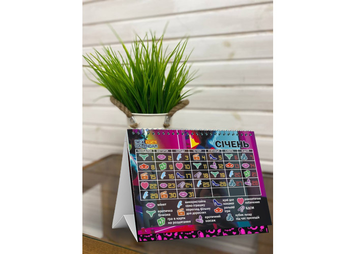 Не пропустіть шанс зробити інтимне життя більш яскравим! SEX КАЛЕНДАР — це можливість додати родзинку у кожен день всього року. День за днем, місяць за місяцем ви будете все ближче впізнавати один одного та насолодитеся безліччю еротичних експериментів. У СЕКС КАЛЕНДАРІ-2024 ви знайдете цікаву ідею на кожен день. Це може бути і романтичне побачення, і масаж інтимних частин тіла, і рольові ігри, і перегляд фільмів для дорослих. Завдяки календарю ви зможете спробувати нові сексуальні ігри та визначитися з улюбленими.